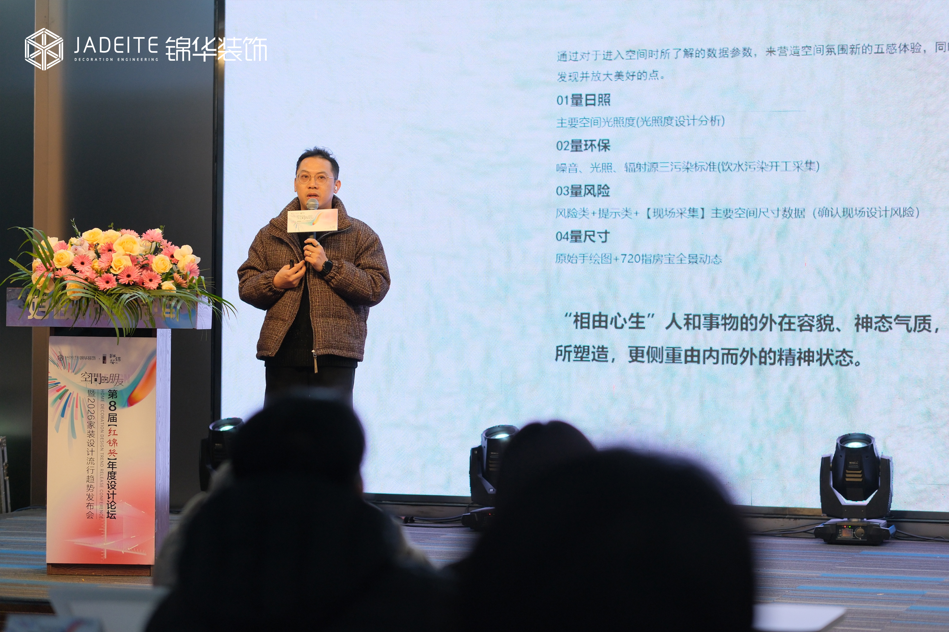 作为室内设计论坛的常驻嘉宾,本次吴越老师以“安全感”为关键词,开启了本次灯光设计的主题分享。在家装设计发展路上,他说灯光设计如同我们的“第六代隐形战机”,唯有持续深耕、不断精进,才能筑牢家装里的安全感防线。而锦华装饰也将在2026年全面推出【灯光效果图】的标准服务,每一位设计师都会将灯光设计融进设计服务中。